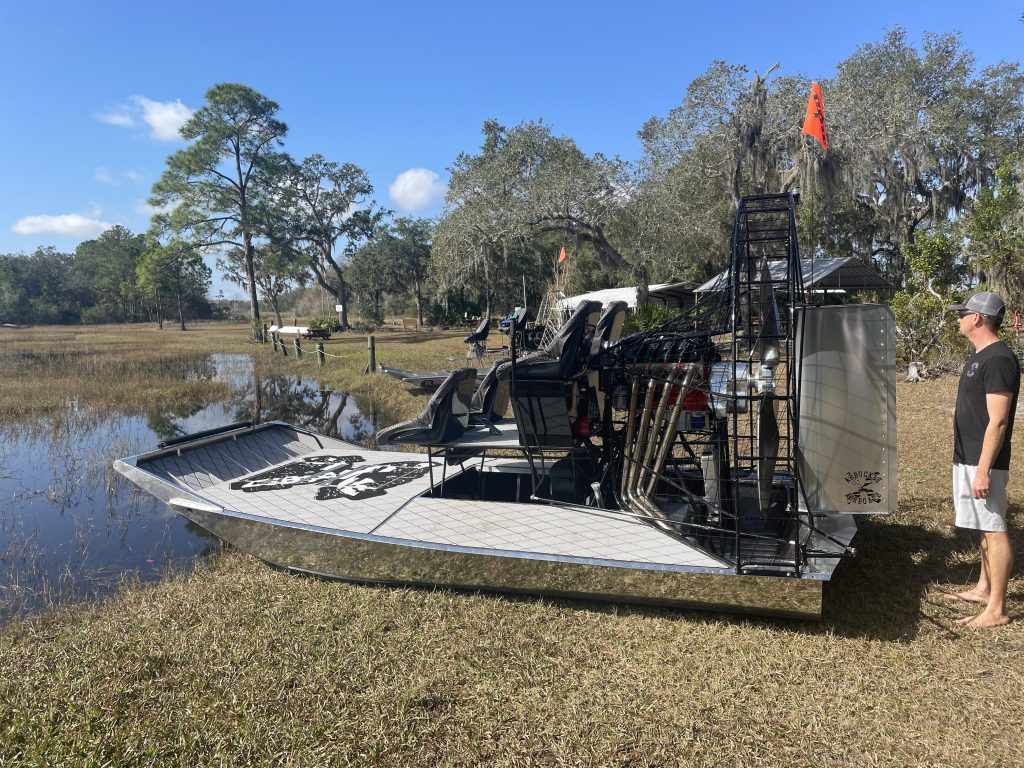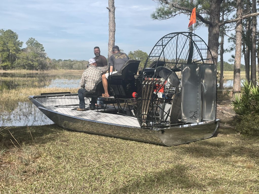 2025 Arbuckle Airboat, 14x8 riveted hull with 3/4 deck and 2' grass rake, riveted 3/8" poly.
